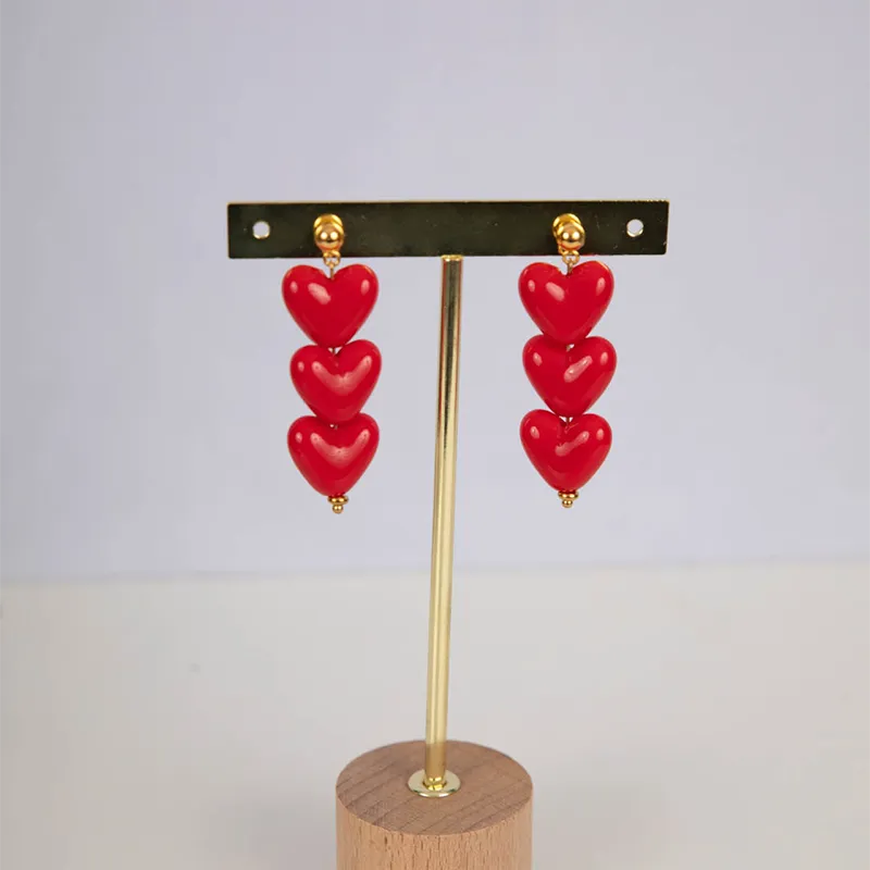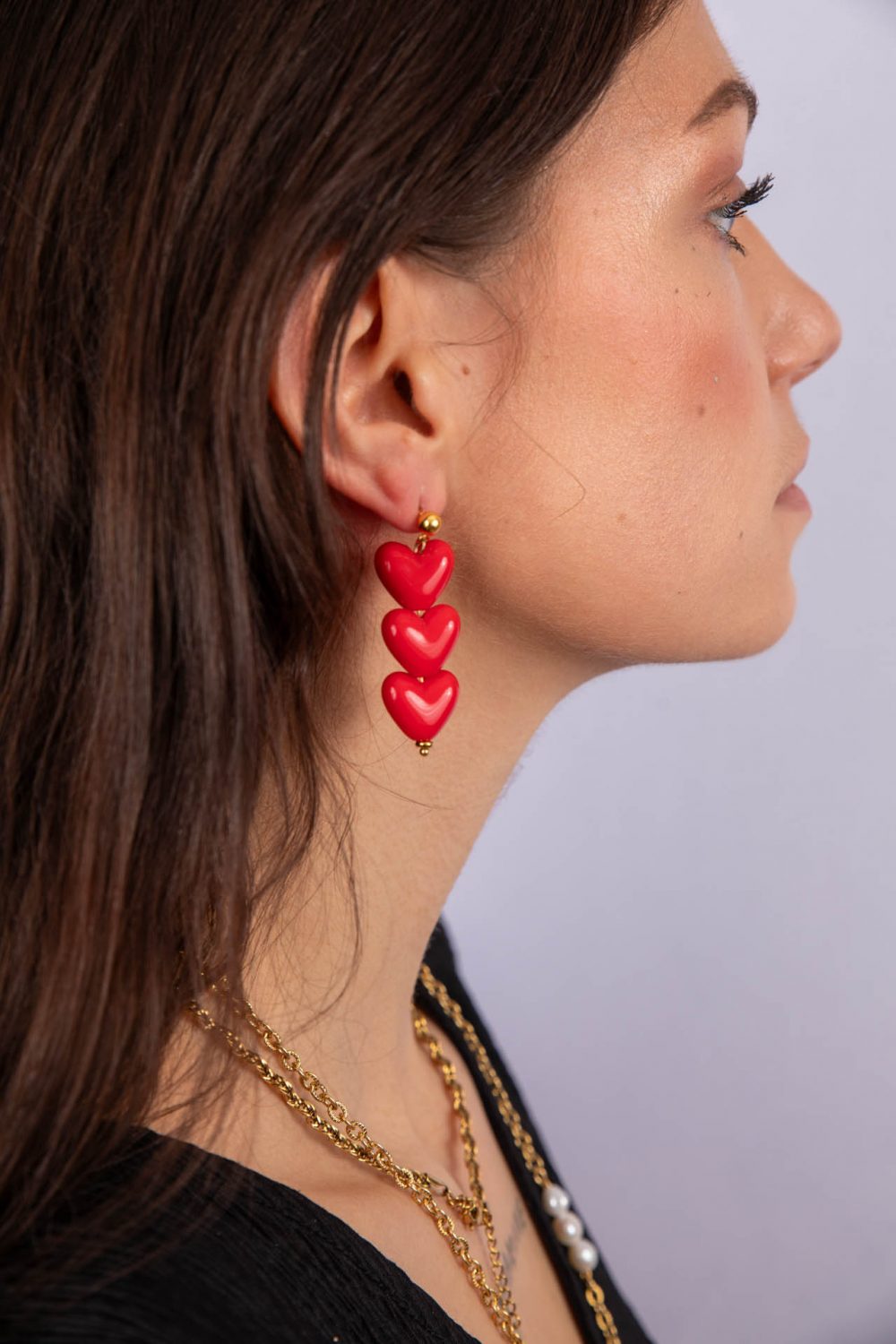 Boucles d’oreilles Cuore rouge en acier inoxydable et acrylique. Fermoir poussette.