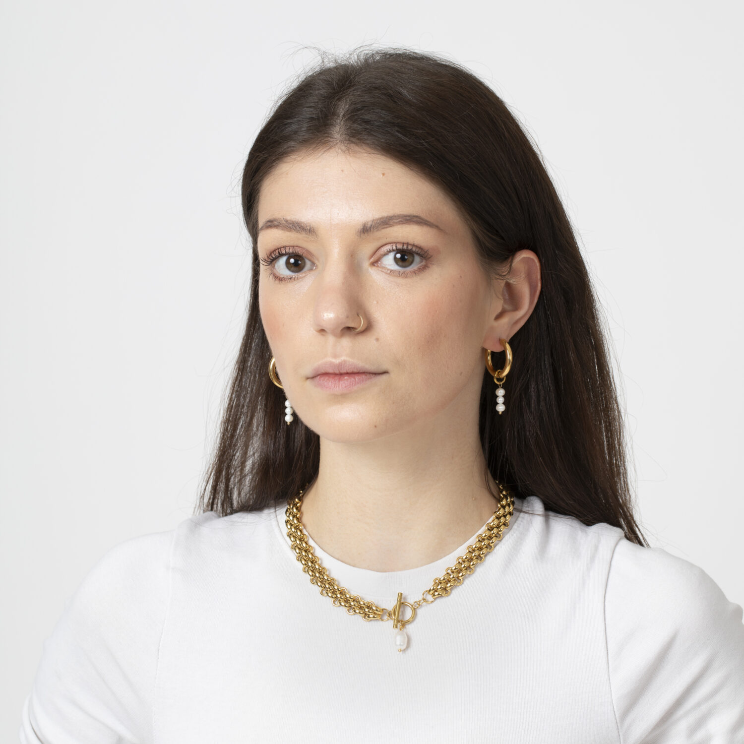Boucles d’oreilles Erquy en acier inoxydable et véritable perles d’eau douce.