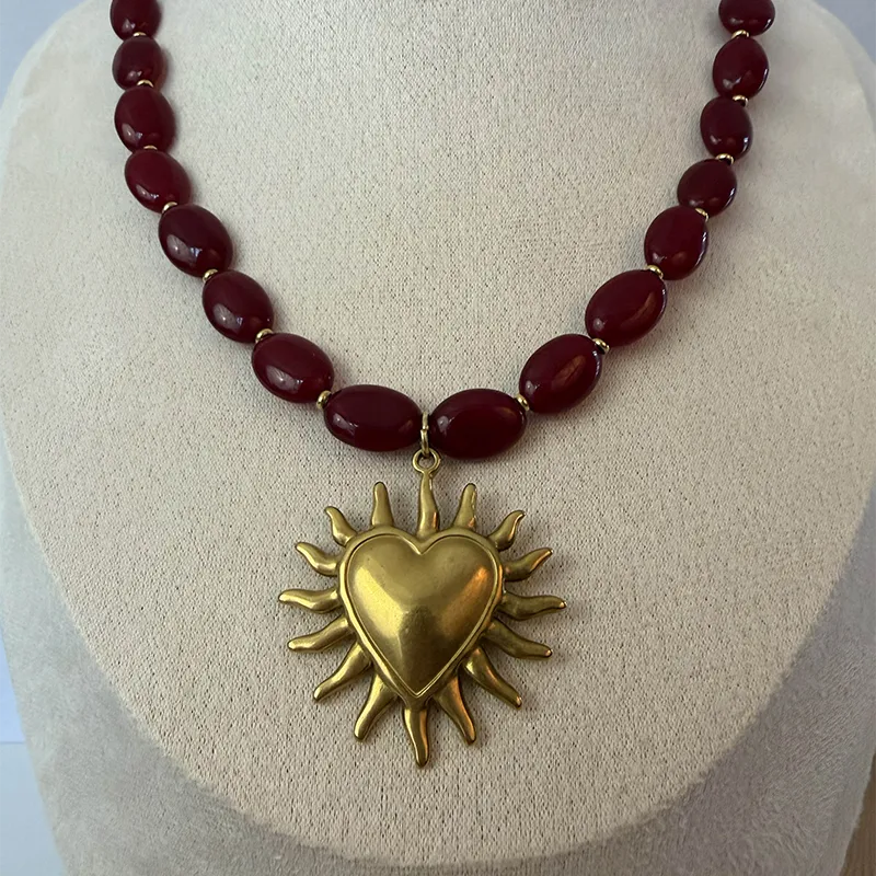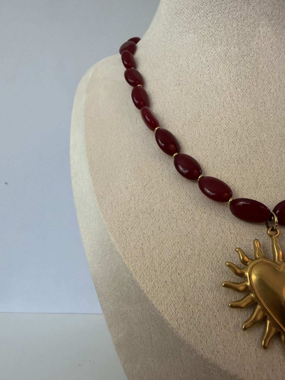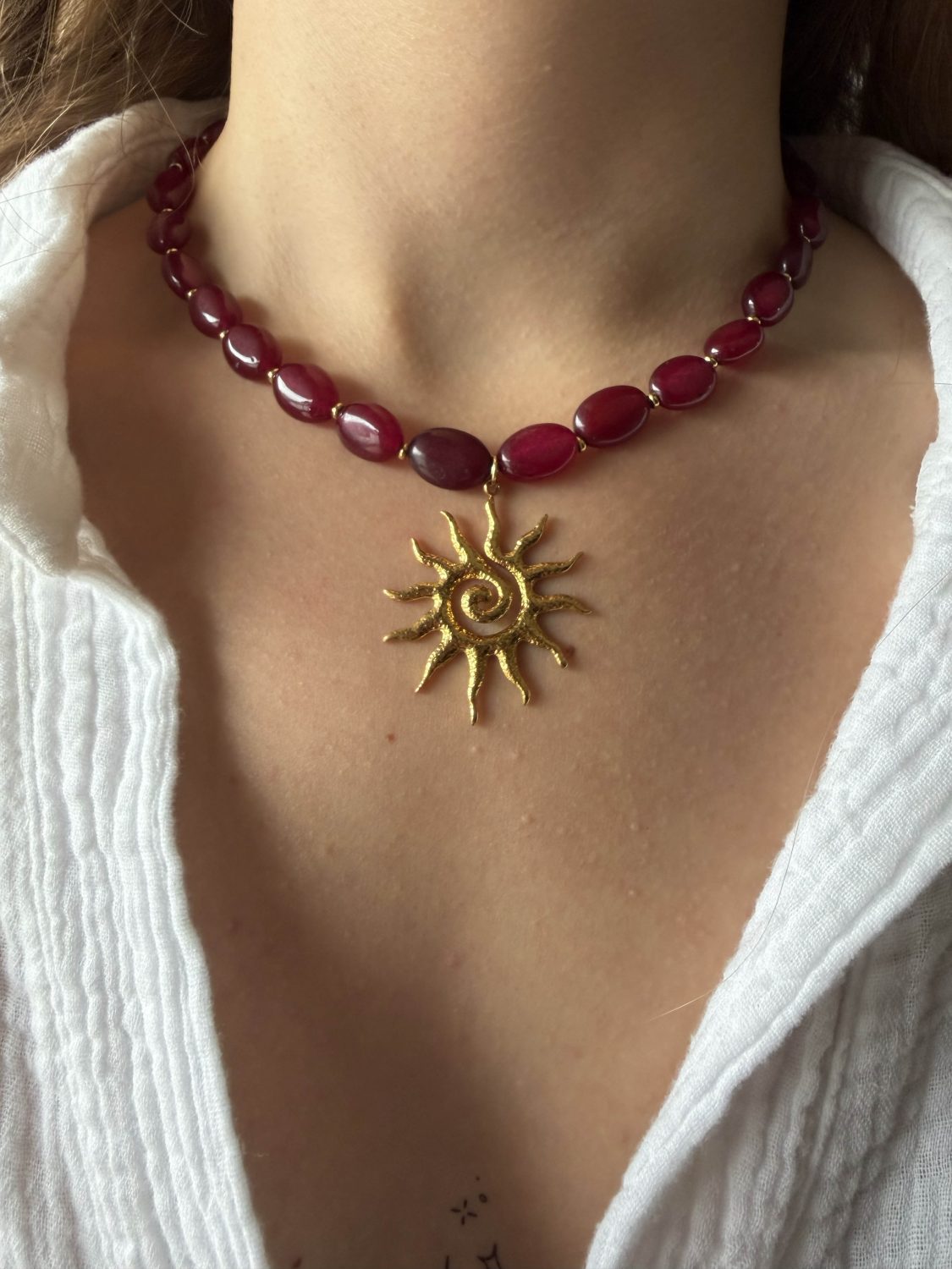 Collier Madère en pierres de Calcédoine de Turquie avec perles de séparation en acier inoxydable. Ce collier est idéal pour un look chic et intemporel, il peut être personnalisé avec la breloque de votre choix, soleil ou cuore ardente Longueur de 45cm + 5cm chaîne de rallonge